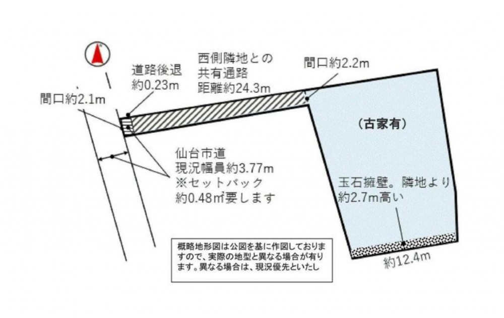 - (仙台市ガス (西側道路敷設済、敷地内引込無し)