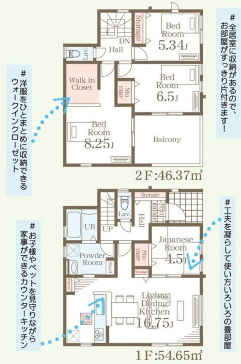 - システムキッチン、カウンターキッチン、シャンプードレッサー、洗浄便座、浴室乾燥機、複層ガラス、モニタ付インターホン、駐車場3台分、床下収納、トイレ2箇所
