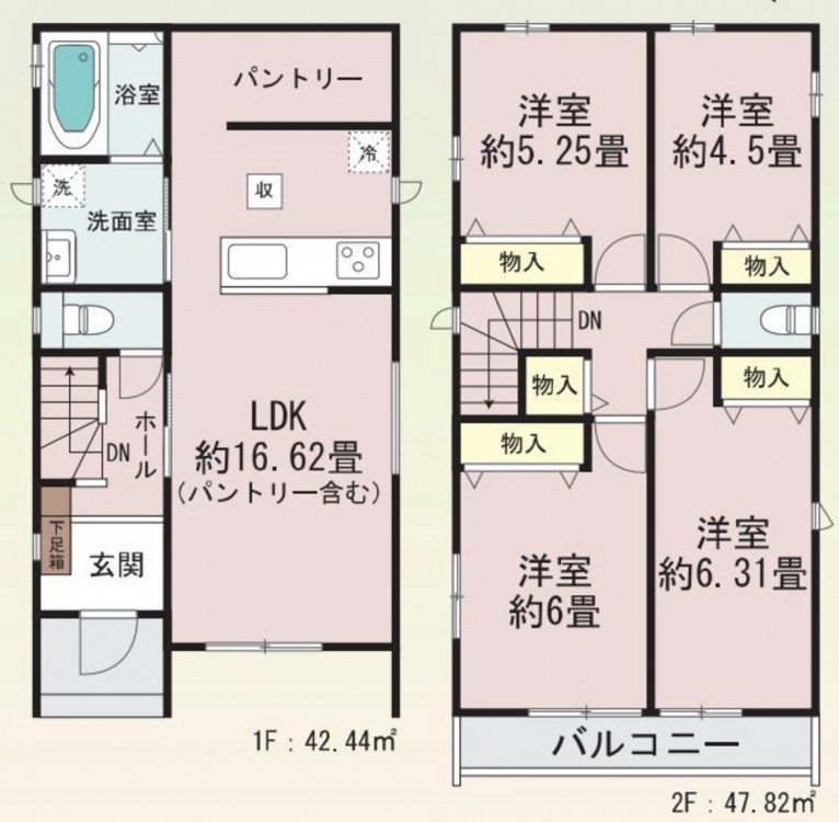 - システムキッチン、カウンターキッチン、シャンプードレッサー、洗浄便座、浴室乾燥機、複層ガラス、モニタ付インターホン、駐車場2台分、床下収納、トイレ2箇所