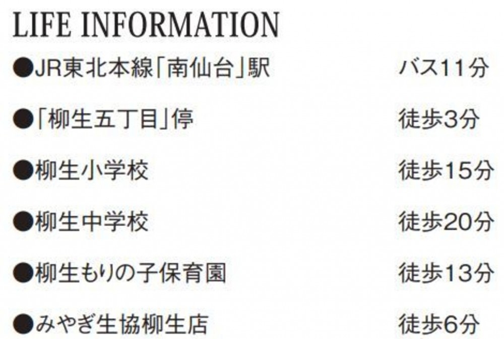 東北本線 南仙台駅 バス11分乗車 バス停柳生5丁目 まで 徒歩3分
