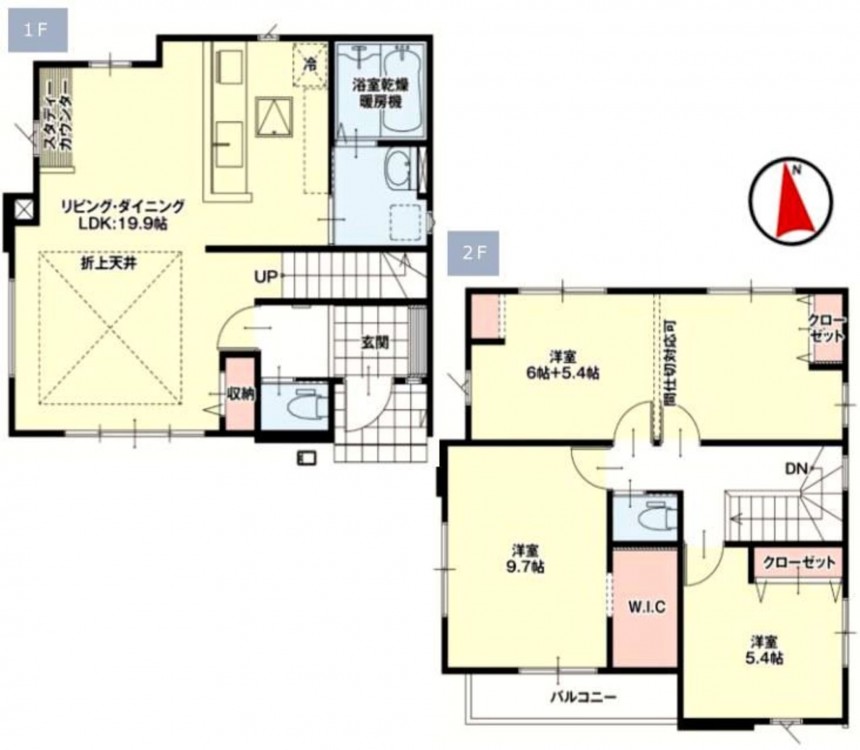 - システムキッチン、カウンターキッチン、IHクッキングヒーター、オール電化、シャンプードレッサー、洗浄便座、浴室乾燥機、複層ガラス、モニタ付インターホン、駐車場2台分、床下収納、トイレ2箇所