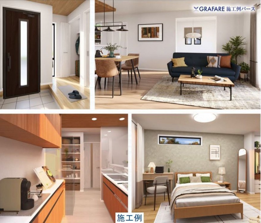 - システムキッチン、カウンターキッチン、IHクッキングヒーター、オール電化、シャンプードレッサー、洗浄便座、浴室乾燥機、複層ガラス、モニタ付インターホン、駐車場2台分、床下収納、エコキュート、トイレ2箇所