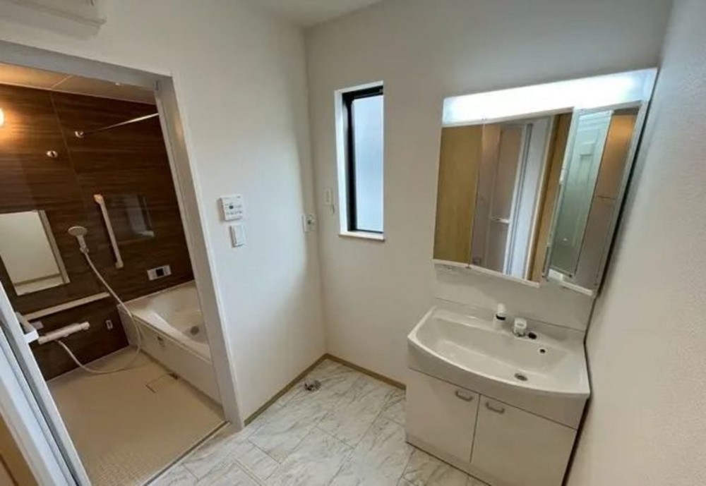 - システムキッチン、カウンターキッチン、シャンプードレッサー、洗浄便座、浴室乾燥機、複層ガラス、モニタ付インターホン、駐車場2台分、床下収納、トイレ2箇所