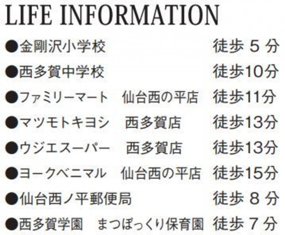 仙台地下鉄南北線 長町南駅 バス9分乗車 バス停西の平一丁目・金剛沢小学校前 まで 徒歩8分