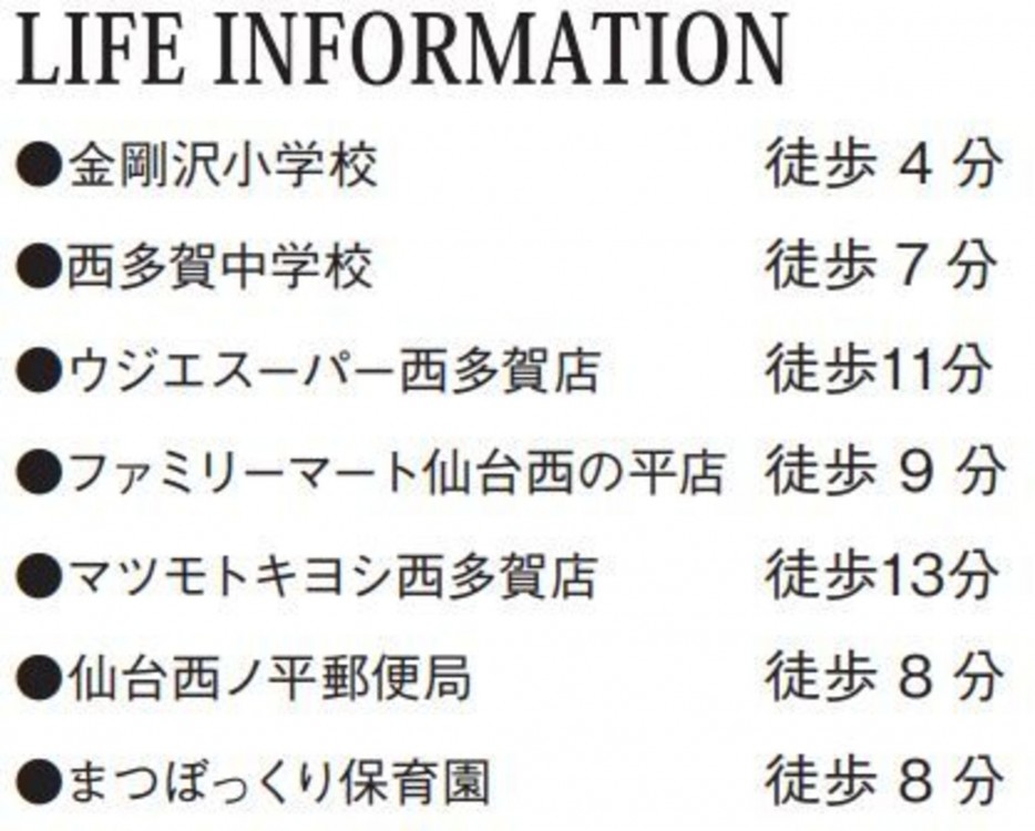 仙台地下鉄南北線 長町南駅 バス8分乗車 バス停西多賀四丁目停 まで 徒歩10分