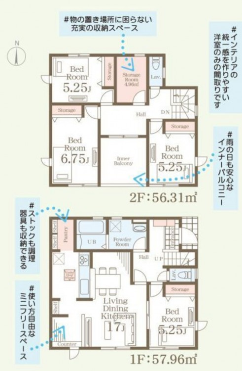 - キッチンからリビングや庭まで見渡せる間取りで、子どもの様子をいつでも感じられる安心感。家族の成長を見守る舞台としてぴったりの新築住宅です。