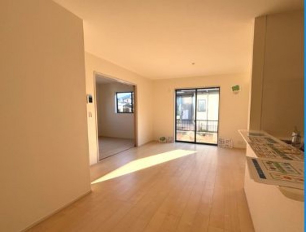 キッチンからリビングや庭まで見渡せる間取りで、子どもの様子をいつでも感じられる安心感。家族の成長を見守る舞台としてぴったりの新築住宅です。