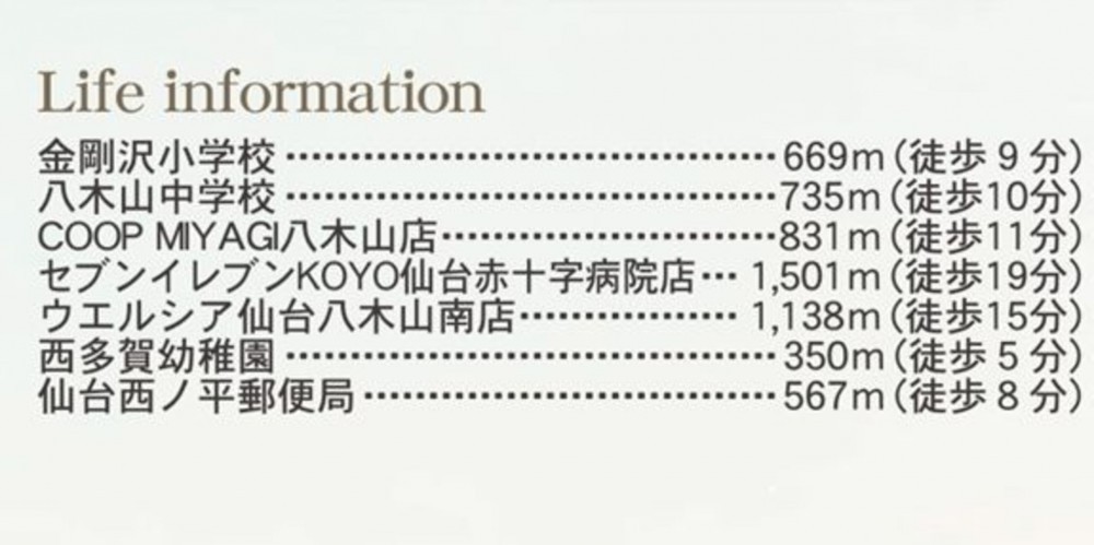 仙台地下鉄東西線 八木山動物公園駅 バス7分乗車 バス停西の平二丁目 まで 徒歩4分