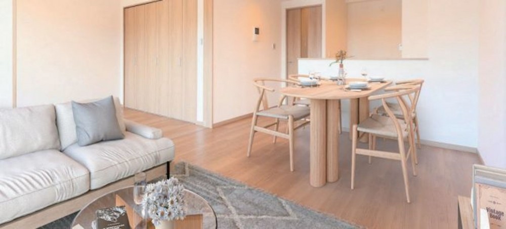 - リフォーム内容:フローリング新規貼替、建具・玄関収納等新規交換、洗面化粧台新規交換、洗浄便座付きトイレ新規交換、ユニットバス新規交換(浴室換気乾燥機付)、給湯器新規交換(追いだき機能付)、システムキッチン新規交換、壁・天井クロス新規貼替、照明器具新規設置